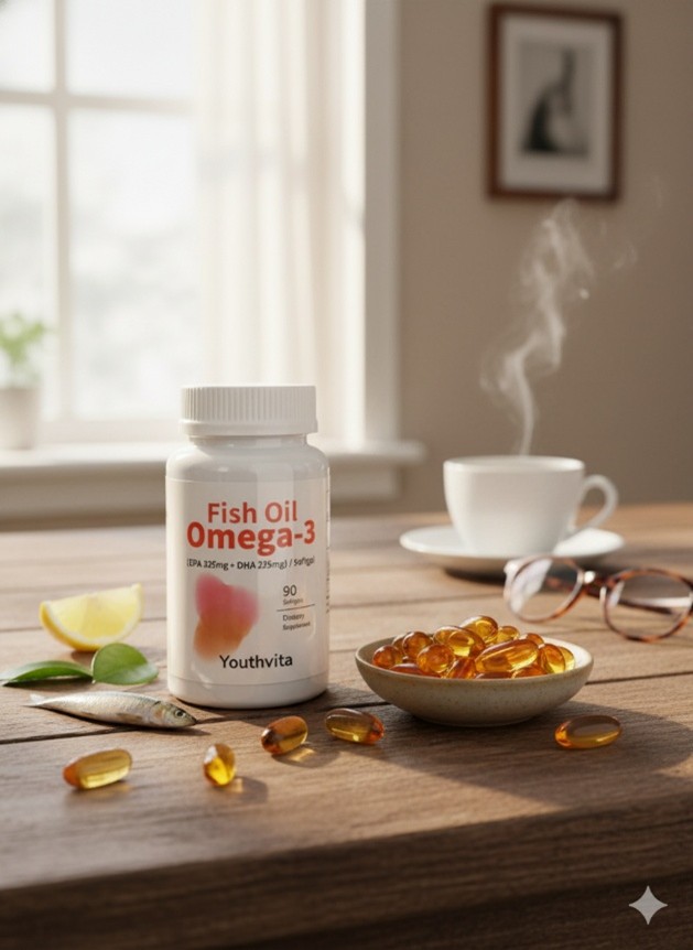 Nourish your body from the inside out with Youthvita Fish Oil Omega-3, a premium supplement formulated to support your heart, brain, eyes, and overall wellness. Each softgel delivers a potent dose of EPA 325mg and DHA 225mg, sourced from high-quality fish oil for maximum purity and absorption.